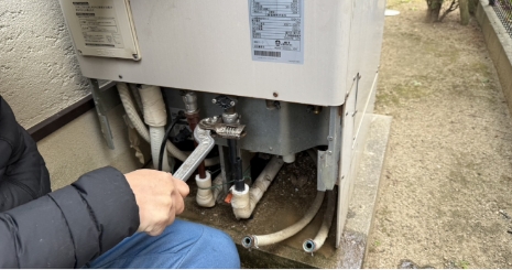工事が完了したら、周辺の清掃の後、エコキュートの運転が問題なく行えるかどうか、試運転・動作確認を行います。