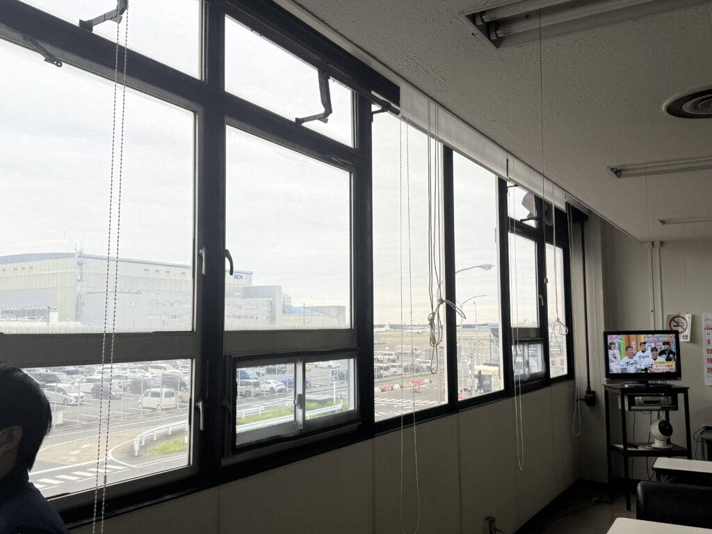 工場休憩室。昔に窓フィルムを貼ってが暑くてエアコンが効かない。